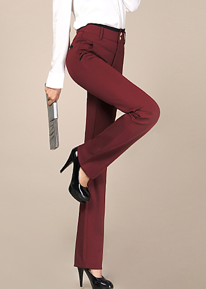 女士修身品红色西裤